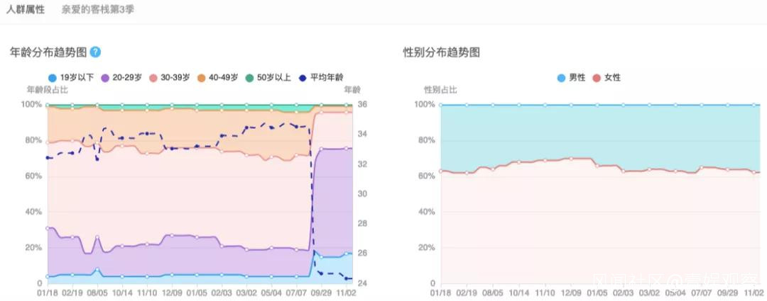 另一方面,職場本就是絕大多數受眾每天經歷的生活。根據雲合數據顯示,三季《親愛的·客棧》最大的用户受眾羣體為30——39歲,且女性觀眾佔比居多,《中餐廳》《嚮往的生活》等慢綜藝受眾也呈現出相似的情況。換句話説,“社畜”是貢獻慢綜藝收視、播放量的主力軍。