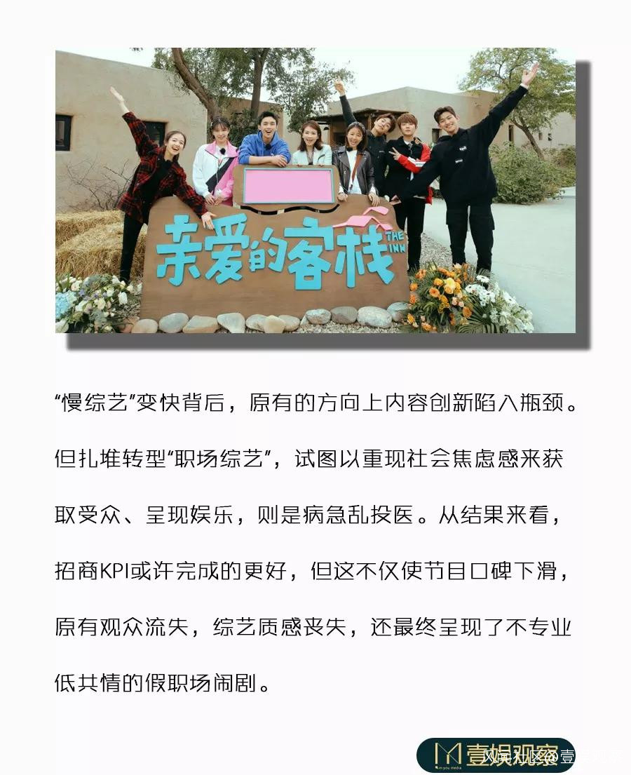 一位《親愛的·客棧》三季觀眾告訴壹娛觀察(ID:yiyuguancha)記者:“第三季競爭性太強了,‘親愛的’已經找不到了。”硬核職場元素的加入,似乎讓慢綜藝陷入了“文不對題”的窘境。而當慢綜藝失去了最原始的初衷,也就失去了獨特的風格和與快綜藝競爭的力量。