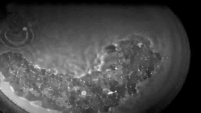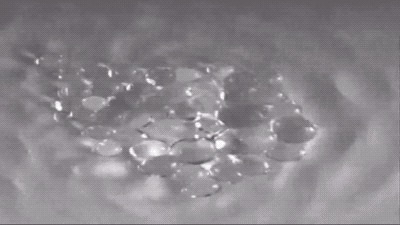 而發生法拉第波的時候,不會聚並的液滴的體積特別大。看,你能相信這些果凍一樣的珠子都是水嗎——