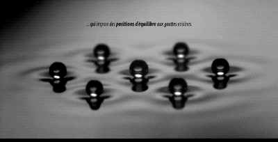 更有意思的是,Couder 發現,產生法拉第波時,在液麪表面彈跳液滴的行為符合量子力學的描述,會隨機遊走。此外,液體附近的波還會引導液滴的運動,類似於德布羅意提出的導航波。