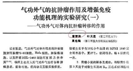 什麼“創下世界紀錄”、“牆內禁止報道”、“碩士研究氣功”,淨胡扯。人家碩士課題是《白細胞介素Ⅱ激活的腫瘤浸潤性淋巴細胞抗腫瘤作用的實驗研究》。氣功的事我們後面會單説。
