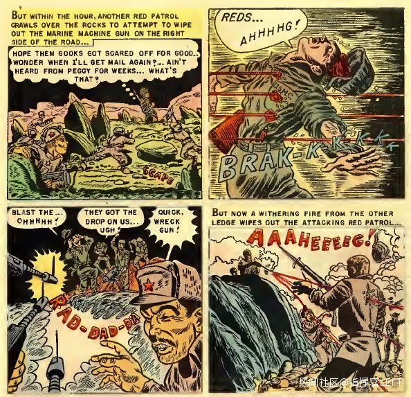 當時大部分的美國漫畫裏,志願軍不是用各種狡詐陰險的冷槍冷炮就是隻會一窩蜂地向前狂奔