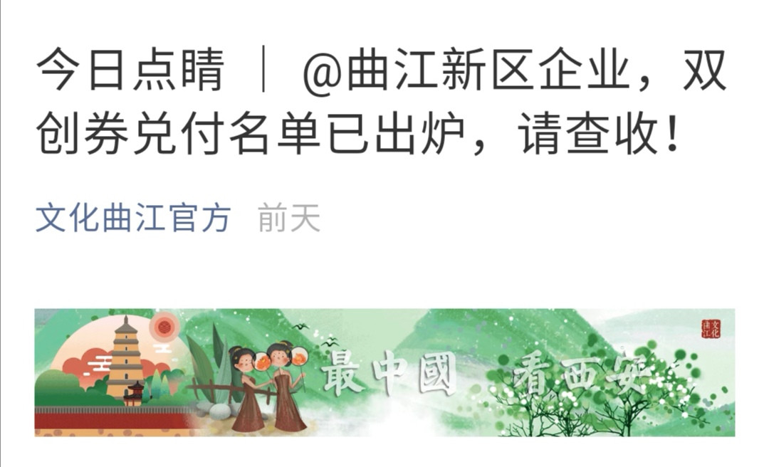 兩天前,西安某區宣傳文化的微信公眾號宣佈了2019年第二季度雙創券兑付名單。並熱情地喊話還沒有申領的企業抓緊時間申領,全年有5000萬額度的雙創券。