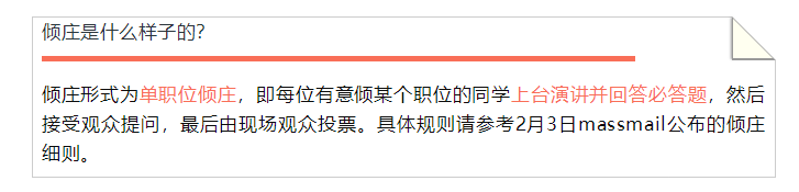 其次是選舉,學生會的選舉方式也很不一般,他們的選舉分為兩部分,一是傾莊,二是選舉。
