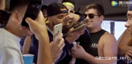 而一名站在他們後方的男生,則高舉手機拍攝整個“遊戲”過程。