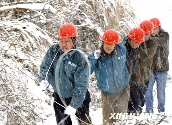 2008年1月28日,國網安徽省電力有限公司宣城供電公司水東供電所員工冒着大雪搶修線路。李曉紅攝(新華社發)