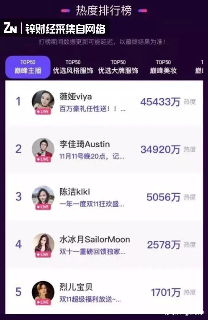 今年雙十一印證了這一馬太效應。據今年淘寶直播雙十一熱度排行榜顯示,截至11月12日零點,薇婭、李佳琦分別以4.5億與3.5億熱度牢牢佔據前排位置,第三名主播陳潔kiki僅有5056萬熱度,與前兩位相差甚遠。