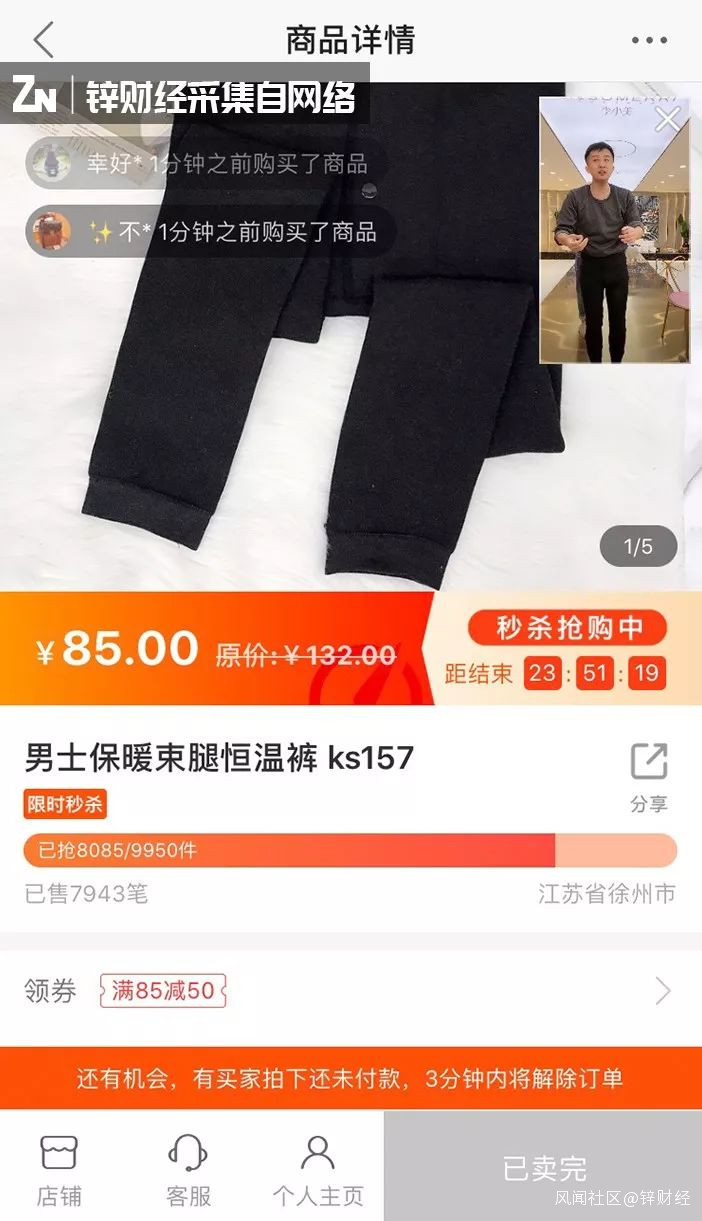老鐵們的狂歡開始了,上架不到10秒鐘,1萬條最終售價35元的男士保暖褲,全部秒光。