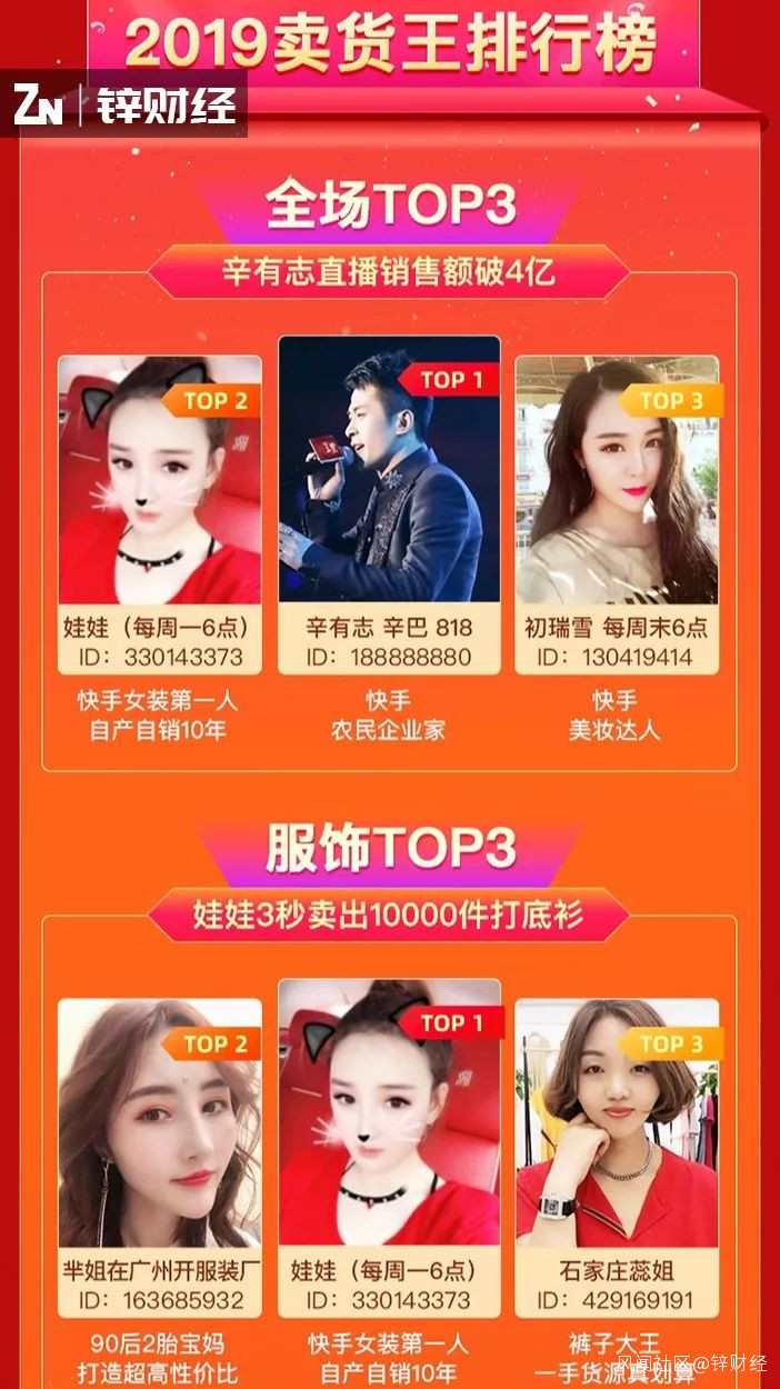 如今娃娃夫妻倆,在快手擁有1300多萬粉絲,2018年銷售額達到3億元,在今年快手116賣貨王爭霸賽上,娃娃夫妻的熱度僅次於辛巴,兩天銷售額突破8000萬,訂單數超過100萬,穩穩佔據快手服飾第一商家的位置。