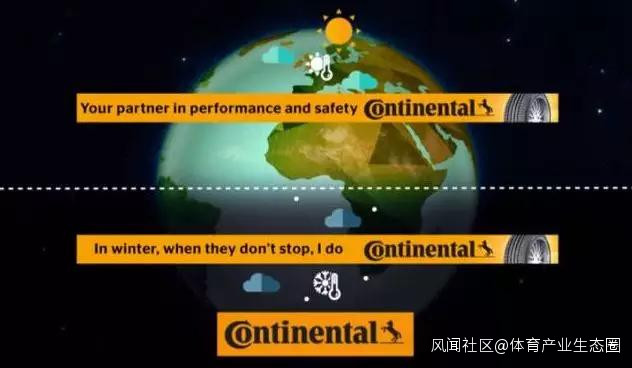 德國馬牌輪胎的場邊廣告,在晴天時文案就是「擁有優良表現和極高安全性的夥伴」,而如果球場出現降雪的情況,DBR系統會臨時更改文案,變為「冬天,當它們都停不下來時,我們可以」。如此應景、反應迅速的球場廣告營銷,肯定會吸引觀眾的眼球。