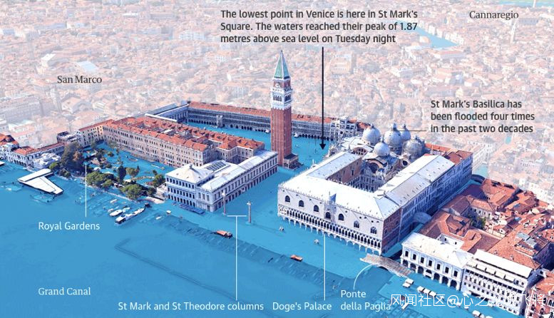 ▲聖馬可廣場為威尼斯的最低點,圖片來自《衞報》