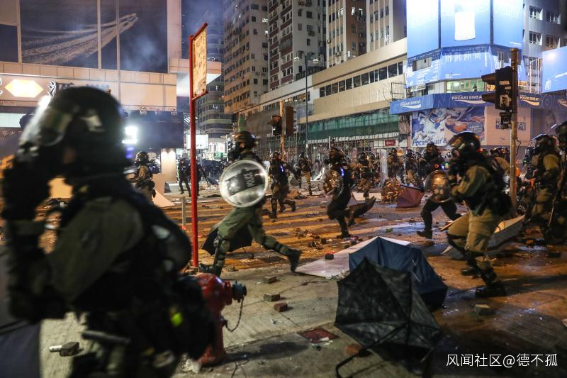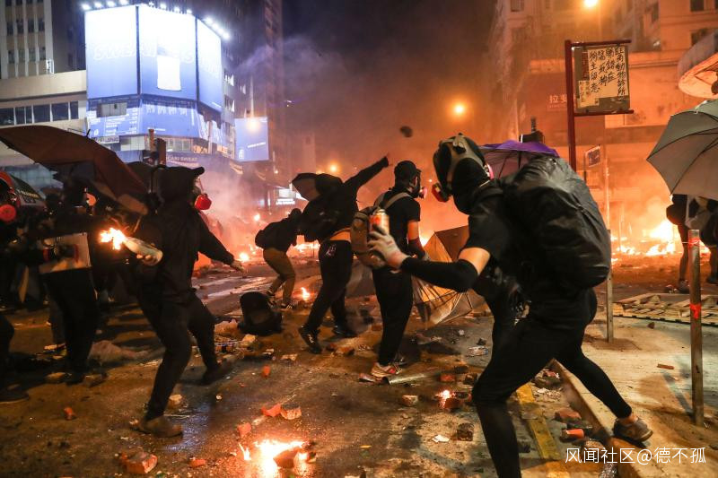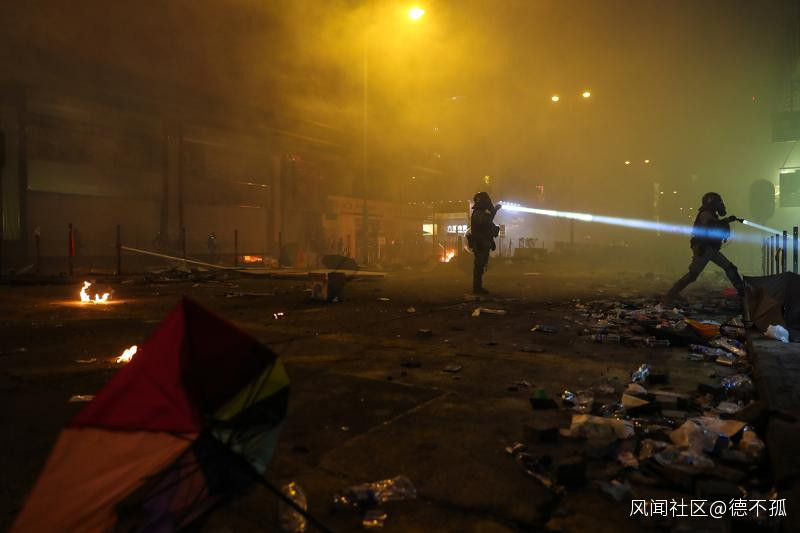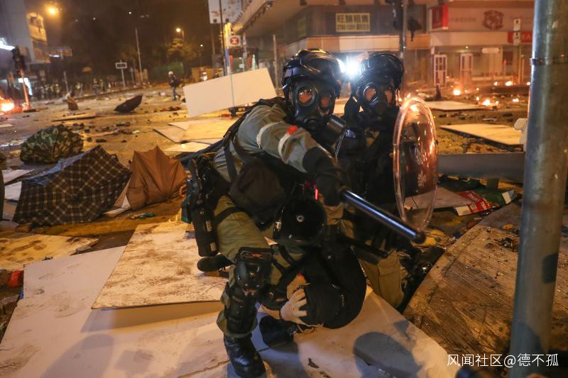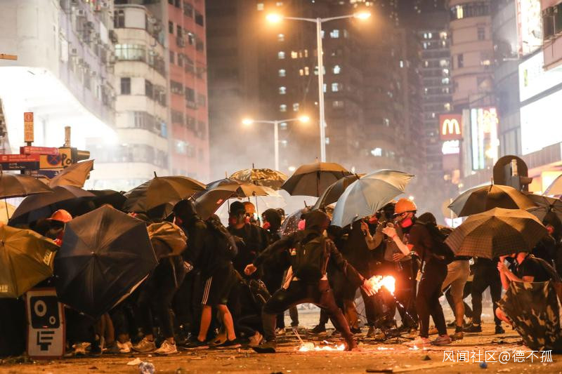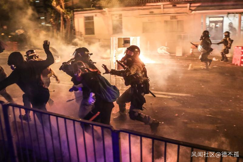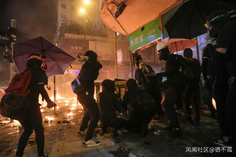 每轉過一條街道都能碰上火力點,這座文明都市裏,竟沒有一處是安全之所。油麻地地鐵站被暴徒實行了稱之為“火鍋”的猛烈攻擊。防暴警察實行抓捕以後,道路被汽油彈焚燒得火光沖天。