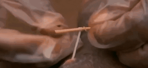 醫生不得不拽了一段以後用小棍子把它固定住,防止蟲體縮回,以便之後再繼續拽。