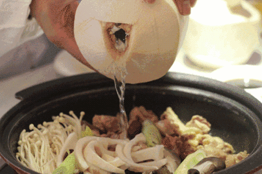 初聽到椰子雞名字的時候,驚訝程度真的不亞於“榴蓮雞”帶來的震撼,但是第一口湯喝下去,一定會被俘虜的。椰子雞算火鍋屆的小清新選手,甜甜的椰汁和雞肉同煮,滿嘴都是鮮甜。