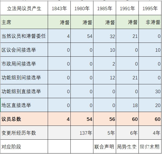 表:立法局議員產生辦法的變化