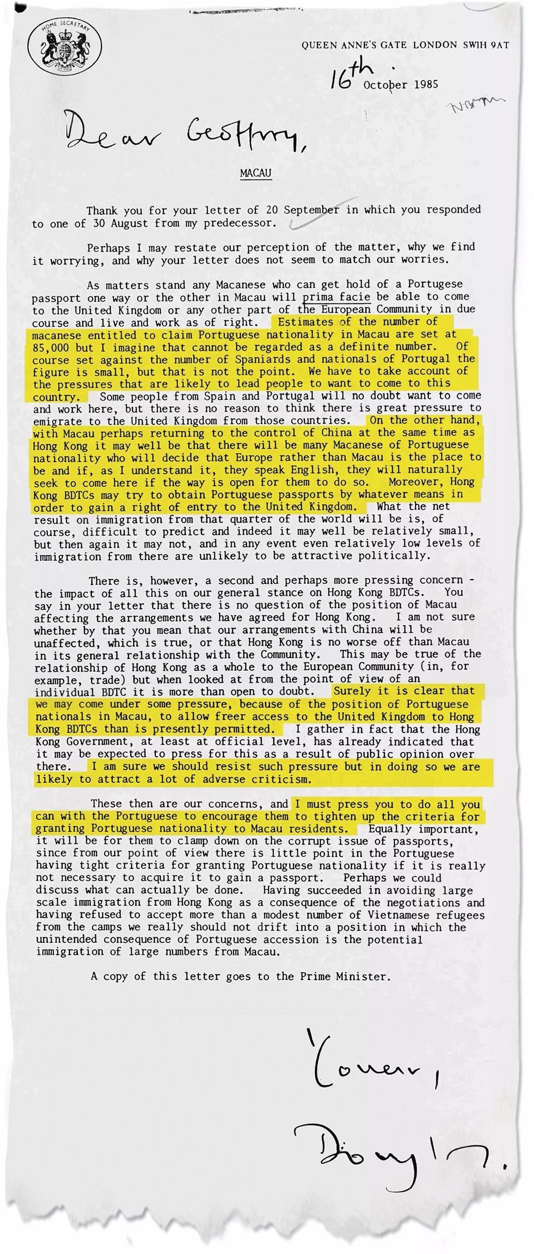 指引裏提到,英國必須在香港租約期滿前,或者在信心崩潰前,與中國進行談判;不要進行代議制改革。尤其引人尋味的段落是: