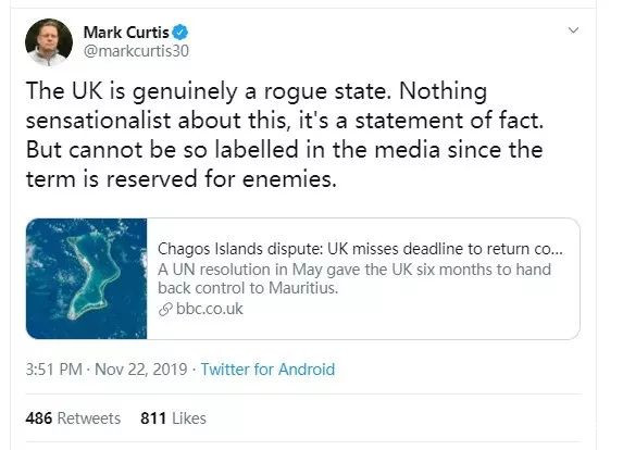不過,在支持和同情毛里求斯的國家與各國民眾眼中,英國的名聲算是臭大街了。就連英國媒體都清楚,英國的這種做法並不是什麼“光彩”的事情。