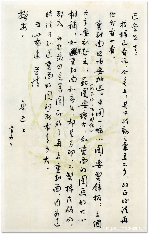 有的則探討文學事業。比如魯迅在信中説起校樣的修改方式:“巴金先生:校樣已看迄,其中改動之處還不少,改正後請再給我看一看。”