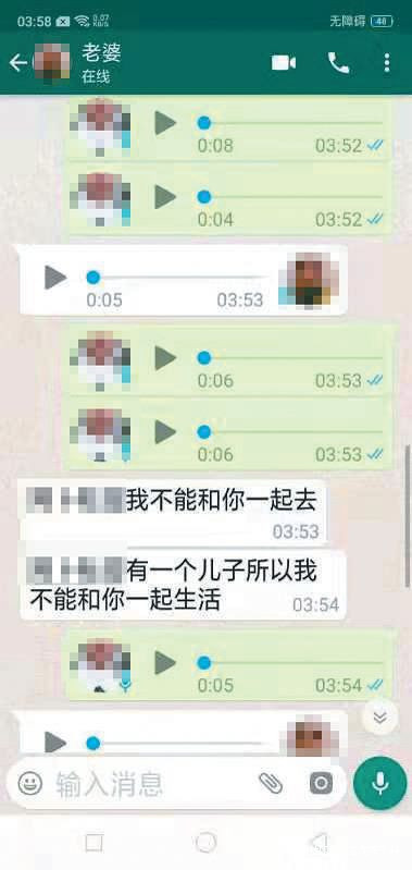 “中介根本就是在騙,我們見的巴基斯坦女孩也不可能來中國。”28歲的馬佔勝還存有與“媳婦”的聊天截圖,在他離開巴基斯坦前,他的“媳婦”明確地告訴他,“阿卜杜拉(馬在巴基斯坦的名字),我結過婚有孩子了,不能跟你去中國的。”
