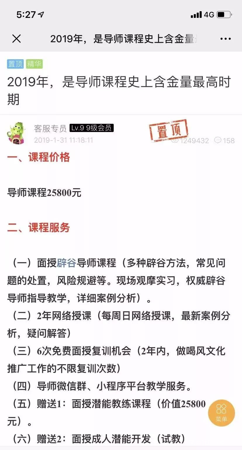雖然他們的公號和網絡論壇都強調“免費”,但他們當然不會放棄到嘴的“肥肉”。會員們要想真正領會喝風心法,光靠網絡看直播不夠,需要面授——線下觀摩學習多種辟穀方法,讓你現場真聽真感受,“權威”導師面對面指導教學。