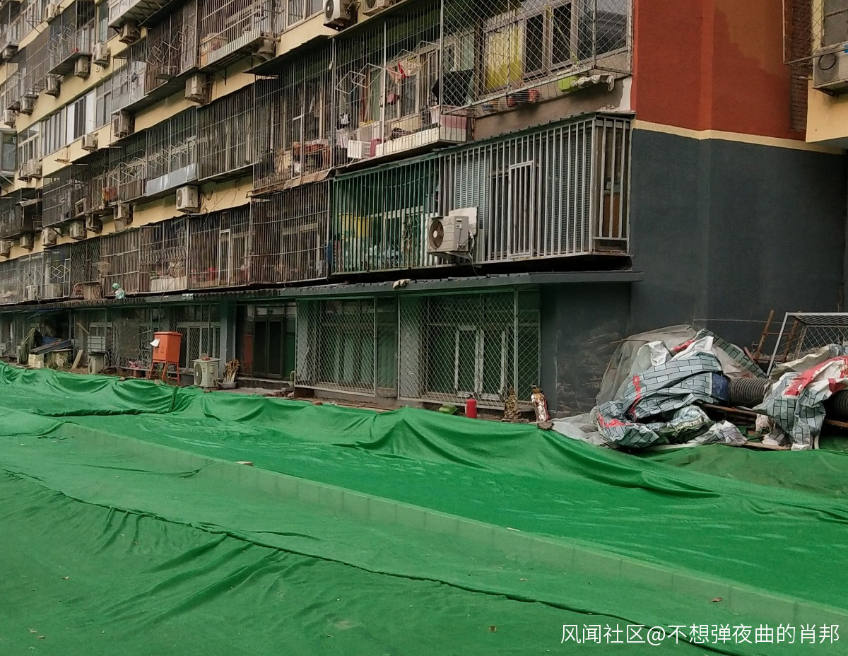 西城區半步橋13號院4號樓是小區沿街的一棟樓,一道建築圍擋將4號樓與樓前的小馬路分隔。記者進入小區看到,4號樓南側目前還處於整修狀態,地上鋪着綠色苫布,一台小型挖掘機孤零零地停在樓前。之前私挖地下室的地方,如今已看不出任何痕跡。
