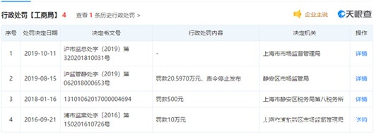 根據天眼查發佈的相關信息,2016年9月21日,上海市浦東新區市場監督管理局因歐萊雅利用網站對商品的性能作引人誤解的虛假宣傳,上海市浦東新區市場監督管理局對歐萊雅中國做出10萬元的處罰;2019年8月15日,歐萊雅因發佈虛假廣告被上海市靜安區市場監管局罰款20.597萬元;2019年10月11日,上海市市場監督管理局又指出歐萊雅涉發佈虛假廣告。