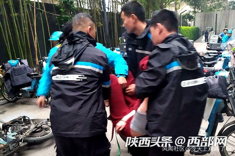隨後,一名外賣小哥背起了女孩,從大都薈樓下跑到高新四路,攔下一輛出租車,向司機簡單説明情況後便直奔西安市高新醫院。