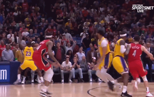 和自己重回克利夫蘭時不一樣,這一次鵜鶘在觀眾的聲浪中士氣大振,頻繁在三分線外出手,前13個三分球命中了10個,雖然戴維斯無敵,湖人反而在前兩節落後了10分。