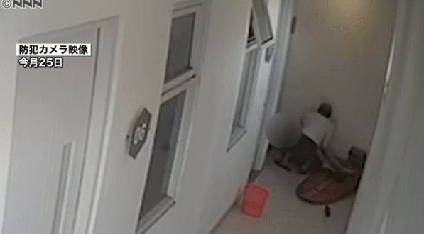 視頻畫面可見,女子並沒有馬上掏出鑰匙開門,似乎是在等待可疑男子的離去。於是男子佯裝離開,躲到了走廊的死角。之後,在女子開門的瞬間,男子快步上前掐住女子的脖子,並將其拖到在地。日媒稱,他起碼絞住女子脖子1分鐘以上,等女子失去意識後,男子拿過鑰匙打開房門,並將女子拖進房間。