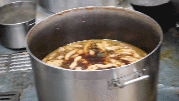 店門口擺放着一口大鍋,各類下水正在滷湯中翻滾攪動。
