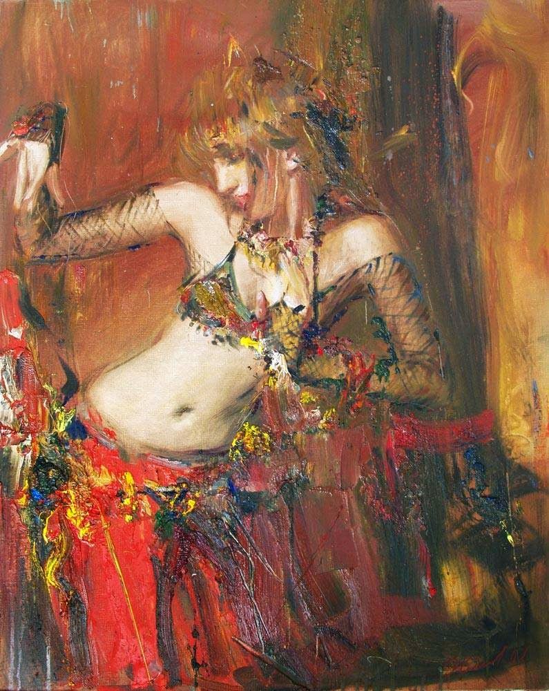 Anna Razumovskaya到1991年才從俄羅斯國立藝術大學畢業,所以依然是蘇聯時代的產物。現在也在歐美出沒。她的風格比較奔放,充滿張力,擅長女子形象,經常是舞者或者音樂家。有時還把素描和水彩結合起來,有點特別。