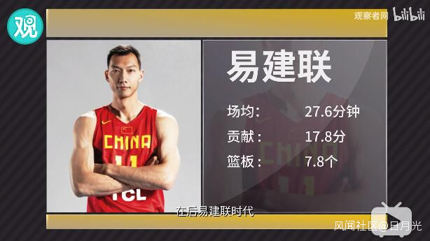 但中國男籃不只是在防守端需要周琦,對比一下易建聯的數據。