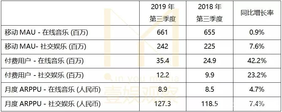 變化在今年三季度出現。騰訊音樂、網易雲不約而同的發出喜報,在線音樂服務成為拉動業績的關鍵。對於平台而言,核心業務向好,顯然是更為鼓舞的增收方向。