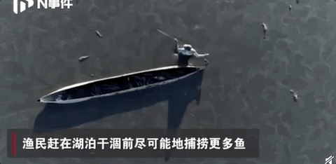 附近的漁民都趕在湖泊完全乾涸之前,儘可能多捕撈一些活魚用於餬口,因為接下來很長一段時間,他們都會失業。