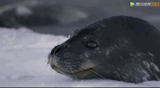 小海豹從媽媽的肚子裏一生出來,就要承受巨大的温差變化,還不會游泳的它被困在冰面上,渾身上下都是雪。