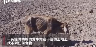 一隻瘦骨嶙峋的野牛,孤獨的站在乾旱的泥土之上,它實在是走不動了,再走一步就要倒下了…