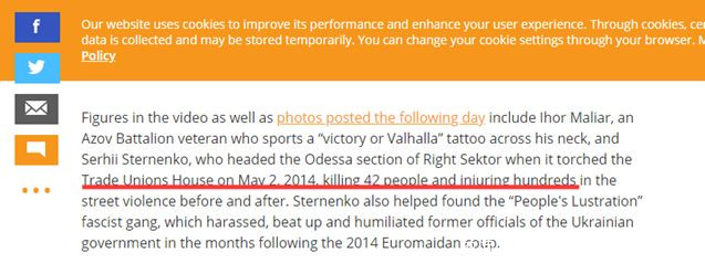 客觀地説,他們的擔憂確實不無道理。根據俄羅斯衞星通訊社的報道,這4名烏克蘭人所來自的“阿佐夫營”(Azov Battalion)和“右部”(Right Sektor)等烏克蘭極右翼新納粹組織,曾在2014年烏克蘭的政變中犯下種種反人類的罪行,比如一手製造了當年5月2日導致42人死亡、數百人受傷的 “敖德薩騷亂”。