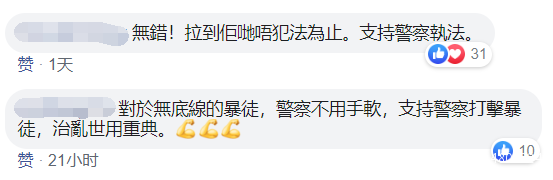 還有網友表示,對於無底線的暴徒,警察不用手軟,支持警察執法。