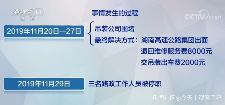 11月29號上午,湖南省高速公路集團公司黨委在聽取調查組初步調查情況後,責成集團公司湘潭管理處從嚴從快處置。當日,湘潭管理處對該事件負有監管責任的蒸湘路政大隊3名路政人員採取停職措施,進行專項調查。但是處罰的具體原因,現在我們還並不清楚。
