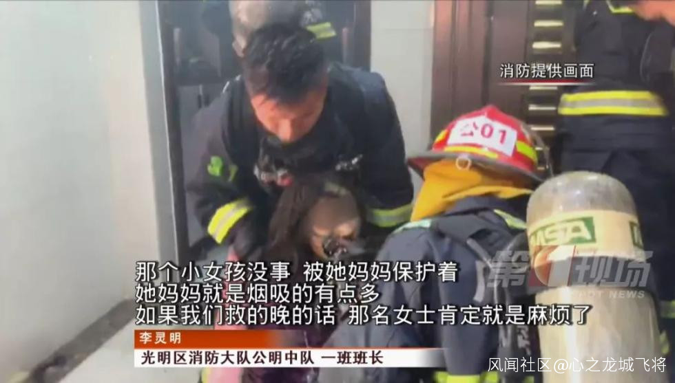 9點40分左右,消防隊員破門而入,成功將這對母女救出。據參與救援的消防指戰員李靈明回憶,當時他們衝進濃煙滾滾的屋內時,母親正用手拼命護住年僅4歲女兒的口鼻,而自己則處於完全無保護的危險狀態。