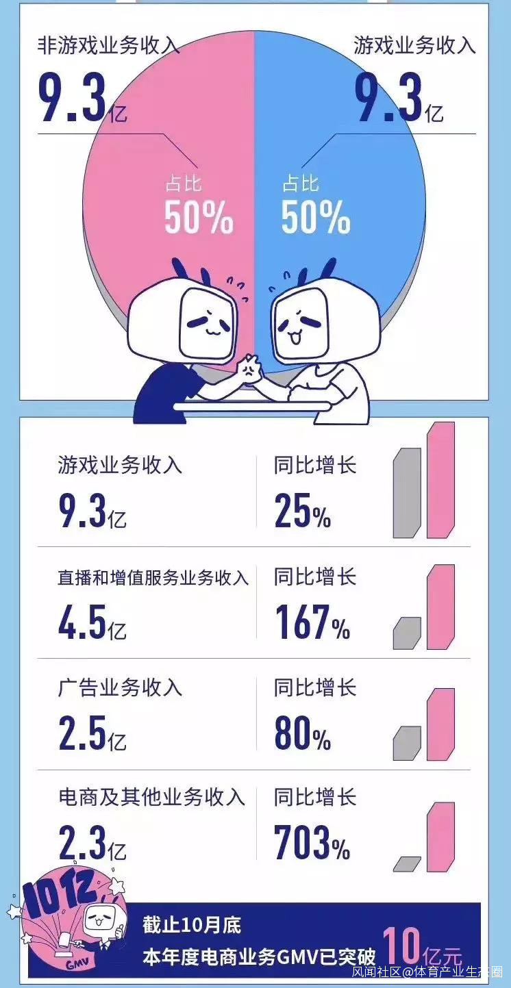 一直以來,他們的營收主要來自遊戲、直播和增值、廣告、電商及其他業務,但在上市之後,曾經遊戲營收為主的他們,開始了探索多元化商業變現,其遊戲和非遊戲營收開始逐漸持平。