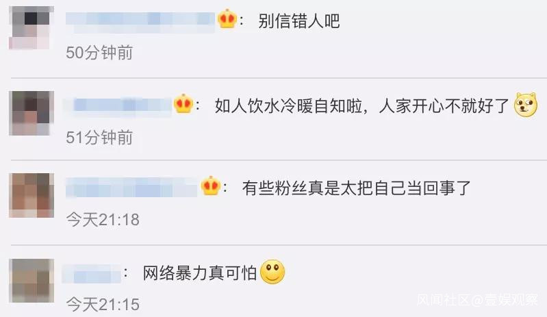 然而粉絲並不買賬,首先避開了傳銷公司不談,其次在節目中説了謊,人品存疑。以及各種還未有石錘的黑料都讓粉絲無法冷靜地祝福。
