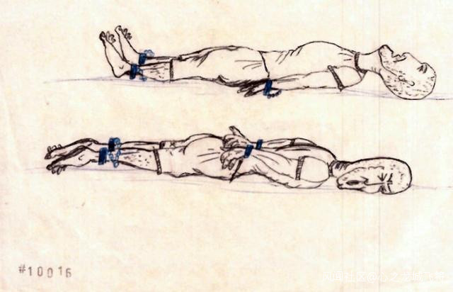 中情局還有一種“水平剝奪睡眠”的方法,其中包括用扭曲的姿勢將其放置在平地上,以至於無法入睡。