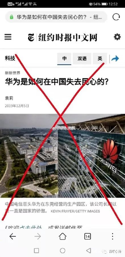 華為:決戰時刻!作者: 當年帥帥 從紐約時報和國內官方媒體的報道來看,天下圍攻的態勢已經成型!美國為了徹底滅掉華為,已經開始動用所有能夠動用的資源,包括國內高層的暗樁,擺出了一副不破華為誓不還的架勢!華為現在已經真正進入了生死存亡的關頭!美國之前還有幾張牌沒有打出來,現在聽説要準備打了。
