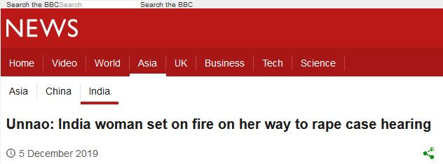 據BBC介紹,最新犯罪統計數據顯示,印度每天都有近100起強姦案發生。
