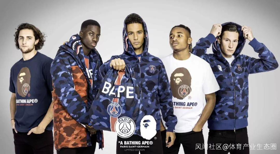 除了PSG X Jordan系列之外,巴黎還和潮牌Bape合作,推出了A Bathing Ape X PSG系列。