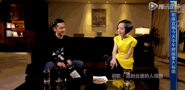 那次採訪,經紀人兼老闆唐人影視的總裁蔡藝儂也跟他一起,有點保姆帶小孩的意思,她還爆了個料,説胡歌看着mtv都會哭。