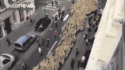 就這樣,“罷工”這件聽上去要流血流淚的事情,在法國先是變成了純粹的小清新,然後畫風變得越來越跑偏和失控。