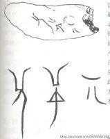 ——山西峙峪遺址所發現的大約3萬年前一塊骨刻上面的3個文字