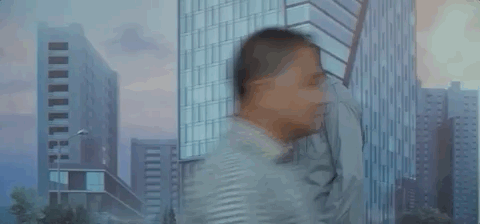 另有一處,周澤農走在路上,背景牆是規劃在圖紙上的高樓景觀。與他的鬼祟落魄形成強烈對比。